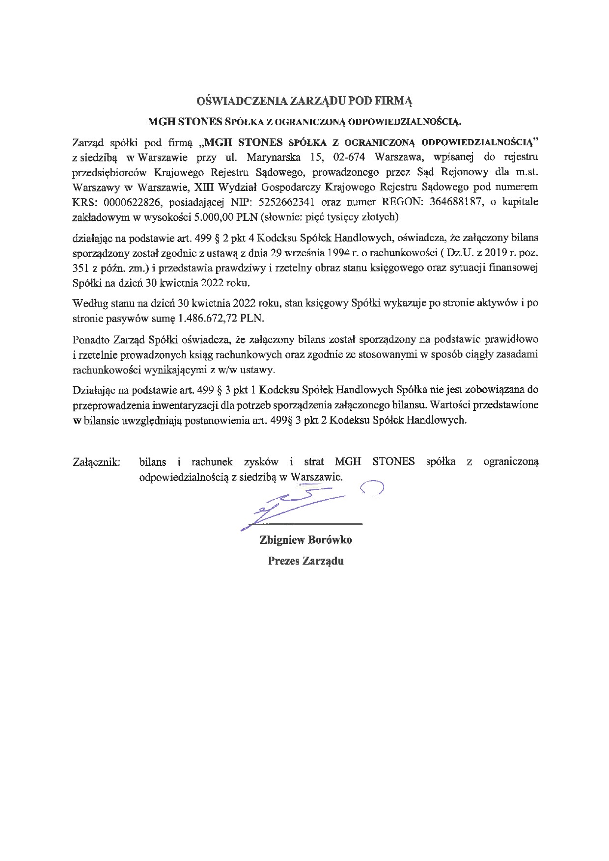 MGH Stones Spółka z ograniczoną odpowiedzialnością